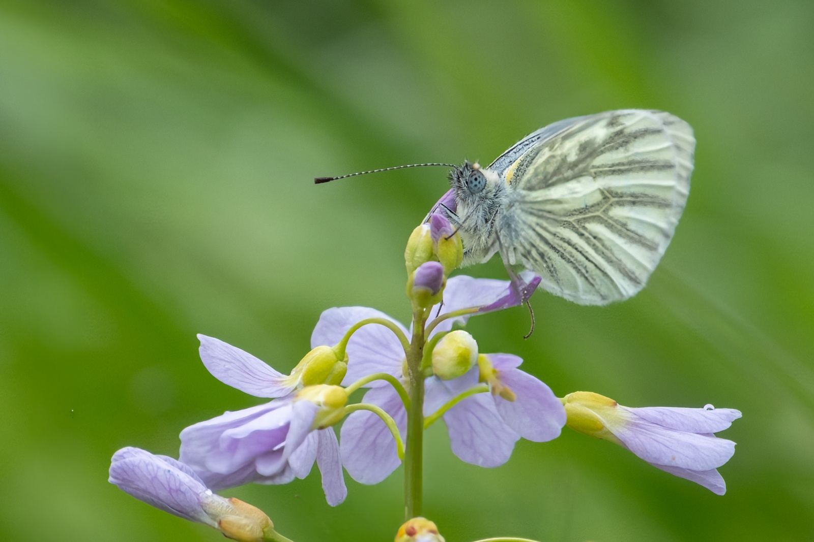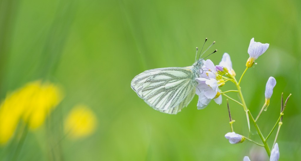 Op zoek naar het oranje tipje op de pinksterbloem vond ik deze niet, maar wel het klein geaderd witje. Op de vraag van een passant wat fotografeert u daar, antwoordde ik: “Deze vlinder!” “Oh, alleen maar een witte vlinder…”, was de reactie. Direct moest ik denken aan het gezegde: “Wie het kleine niet eert……etc”. Onzin natuurlijk, want wij zijn niet allemaal even dol op vlinders, waarbij voor mij het klein geaderd witje er zeker een van is….