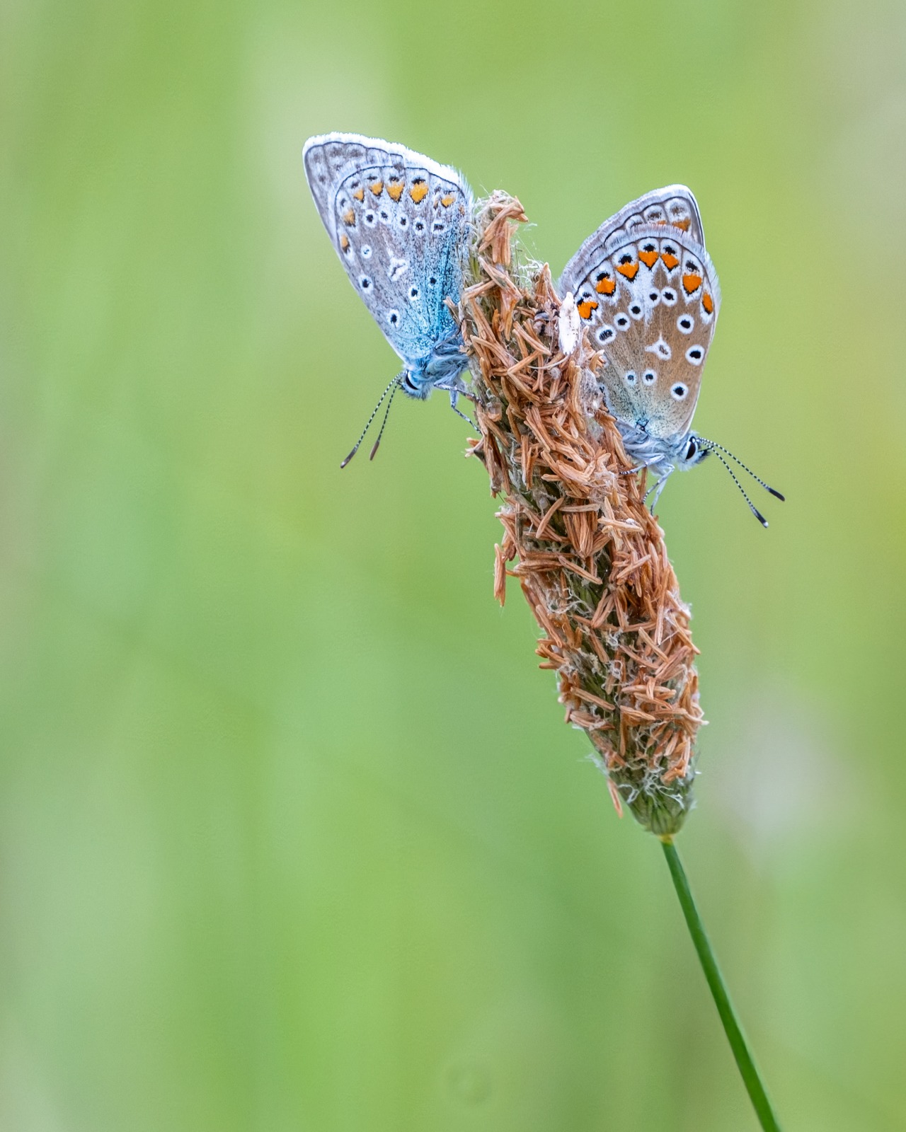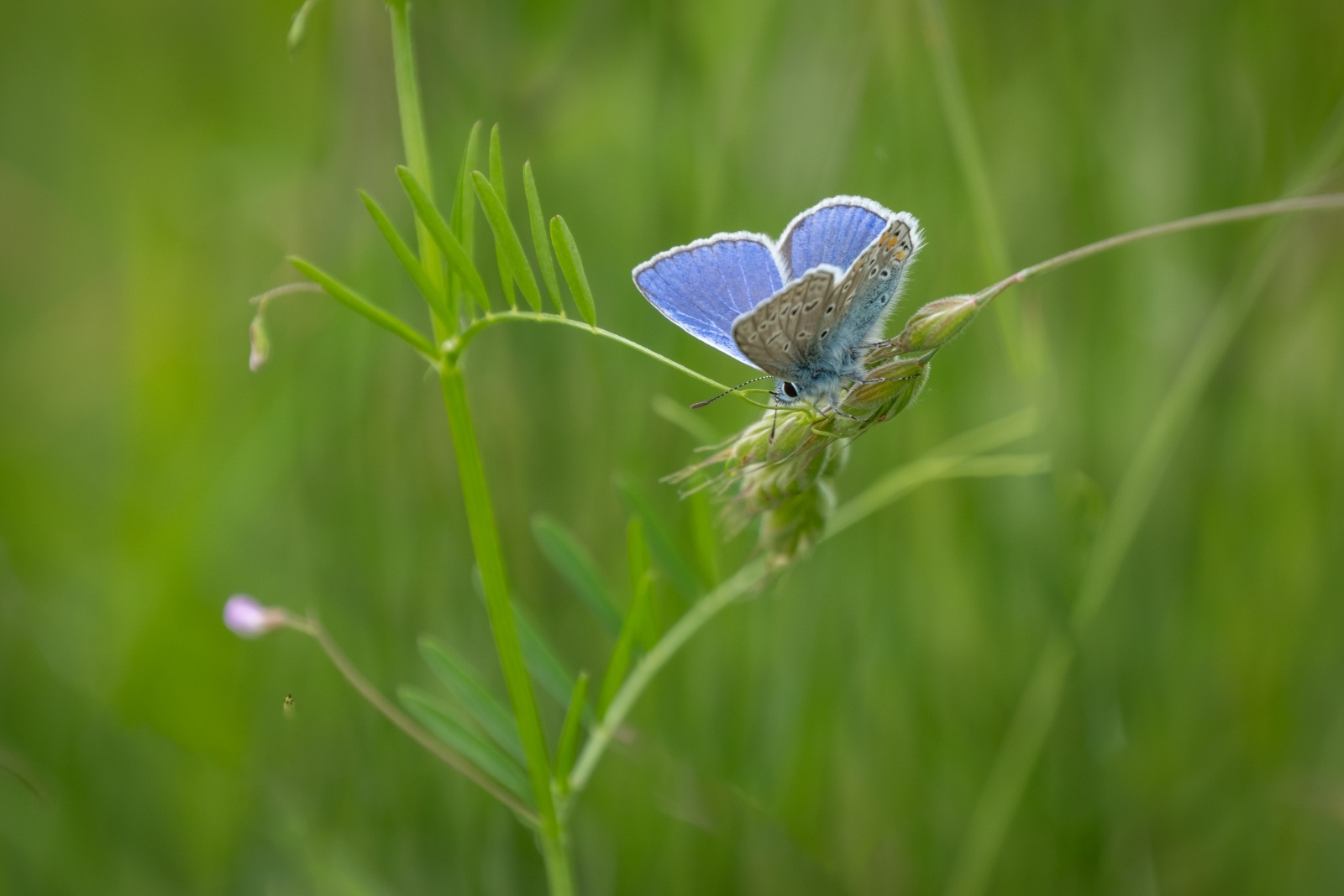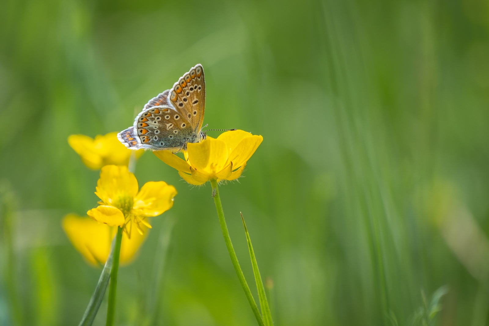 In een van mijn favoriete gebieden aan de rand van het Kroondomein (veen) vond ik opvallend veel Icarusblauwtjes. Geen massa’s, maar op verschillende plekken enkele exemplaren bij elkaar. Een prachtige vlinder die zich op een vroege ochtend mooi laat fotograferen. Naast het icarusblauwtje trof ik het landkaartje en een bruine daguil aan. In de komende tijd zullen er vast weer meer soorten te vinden zijn.