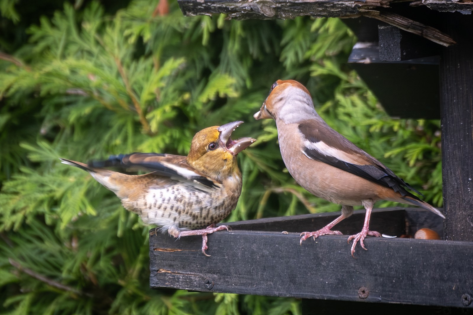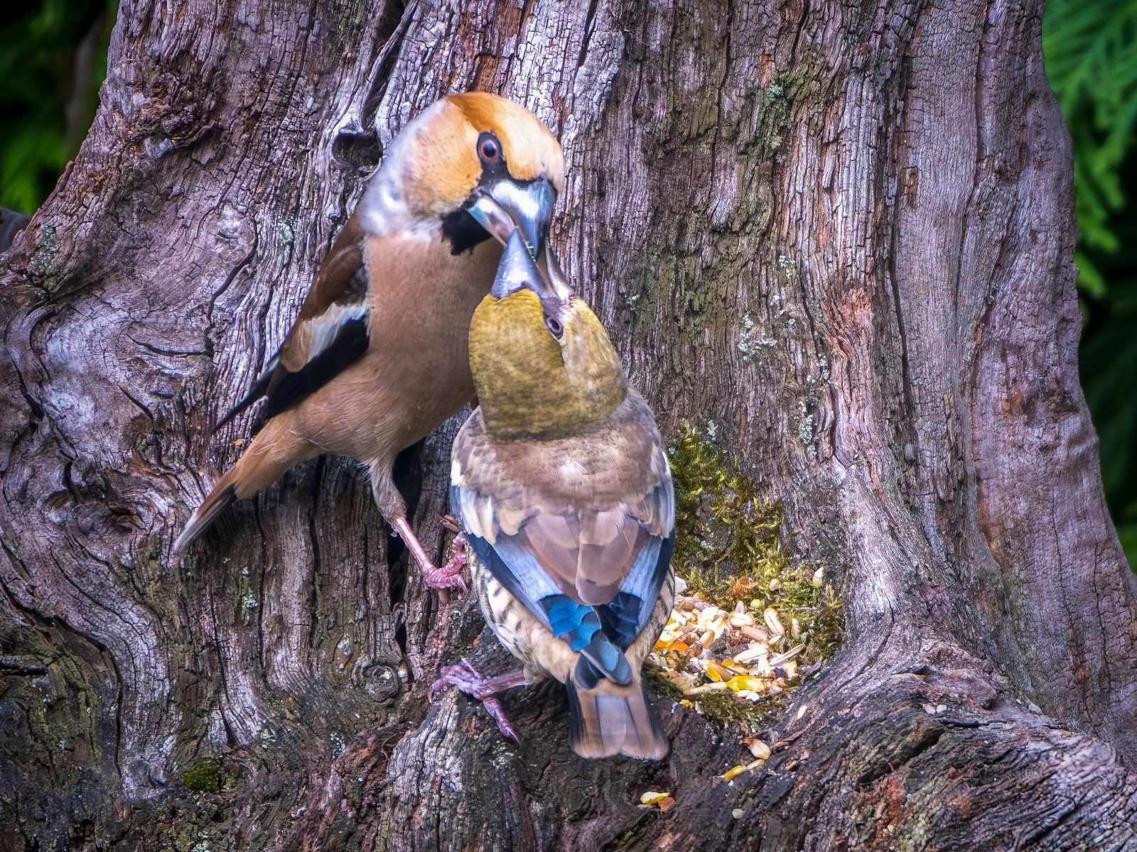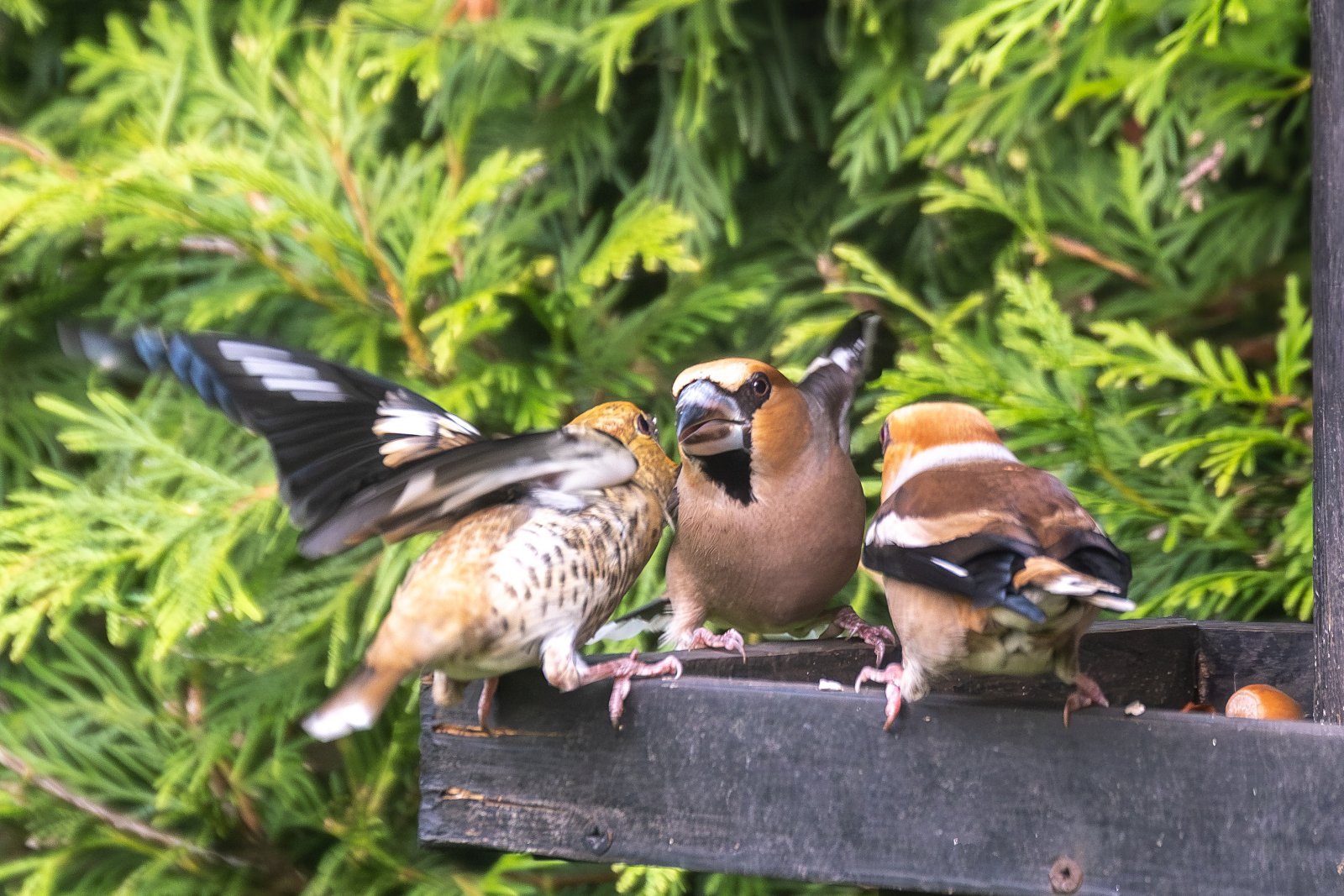 Het is en blijft een bijzonder voorrecht om verschillende soorten vogels en dieren in je tuin te mogen zien. Zo laten de laatste dagen groepjes appelvinken zich weer zien. Ieder bezoek van deze prachtige vogel met zijn kenmerkende grote snavel is al bijzonder. Het wordt extra bijzonder wanneer de ouders, voor je neus, hun jongen voeren.