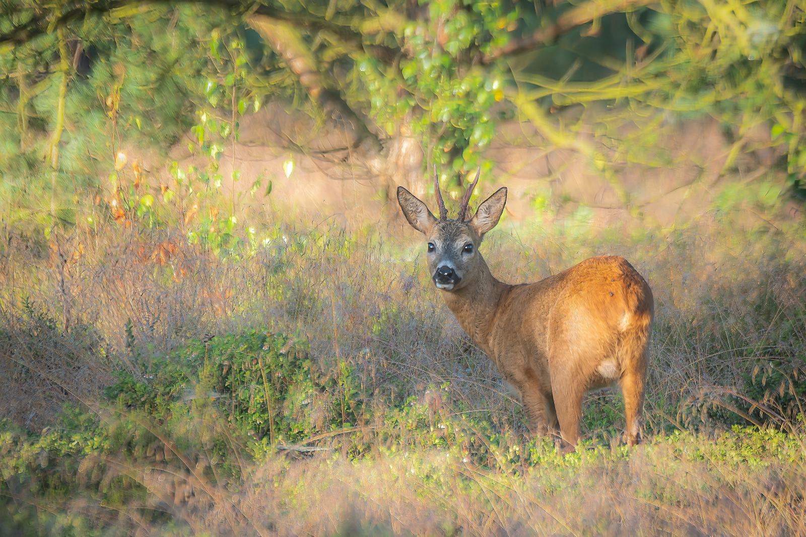Fietsend door de bossen van het Kroondomein het Loo zag ik plotseling een jonge reebok jagend achter een reegeit. De bok had klaarblijkelijk al het nodige aan testosteron door het bloed stromen. Een voorbode voor de aankomende bronstijd van het ree. Overigens trok het dier zich nauwelijks iets van mijn aanwezigheid aan. Wel hield hij mij goed in de gaten….