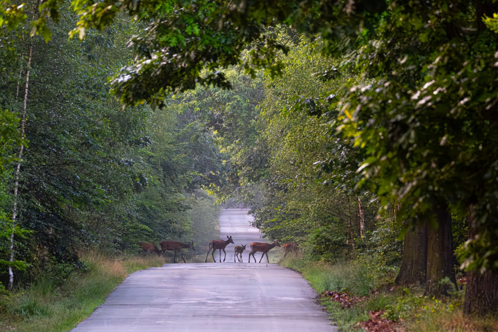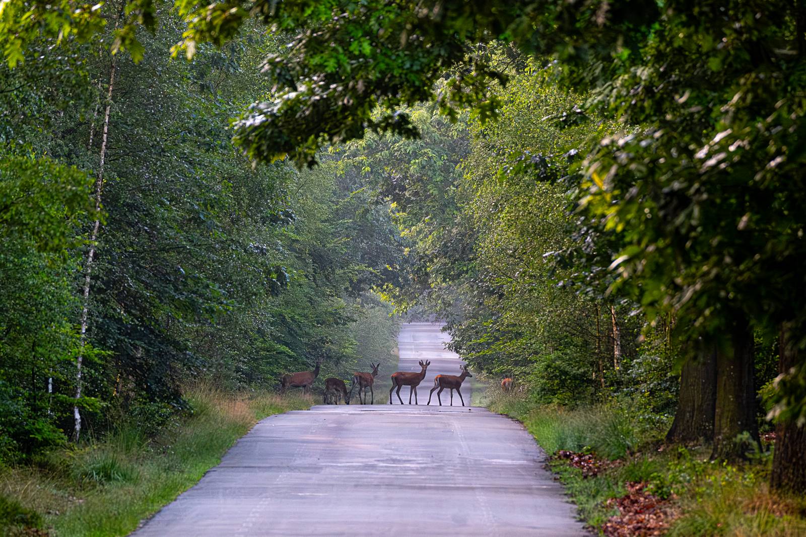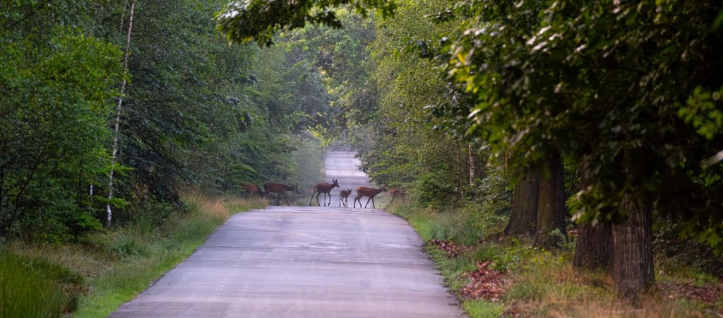Het blijft leuk om s’ morgens vroeg herten een weg over te zien steken en dan te tellen hoeveel het er zijn. In dit geval waren het er 23 en ook nu hadden zij mij wel in de gaten, maar zagen blijkbaar geen direct gevaar in mij….