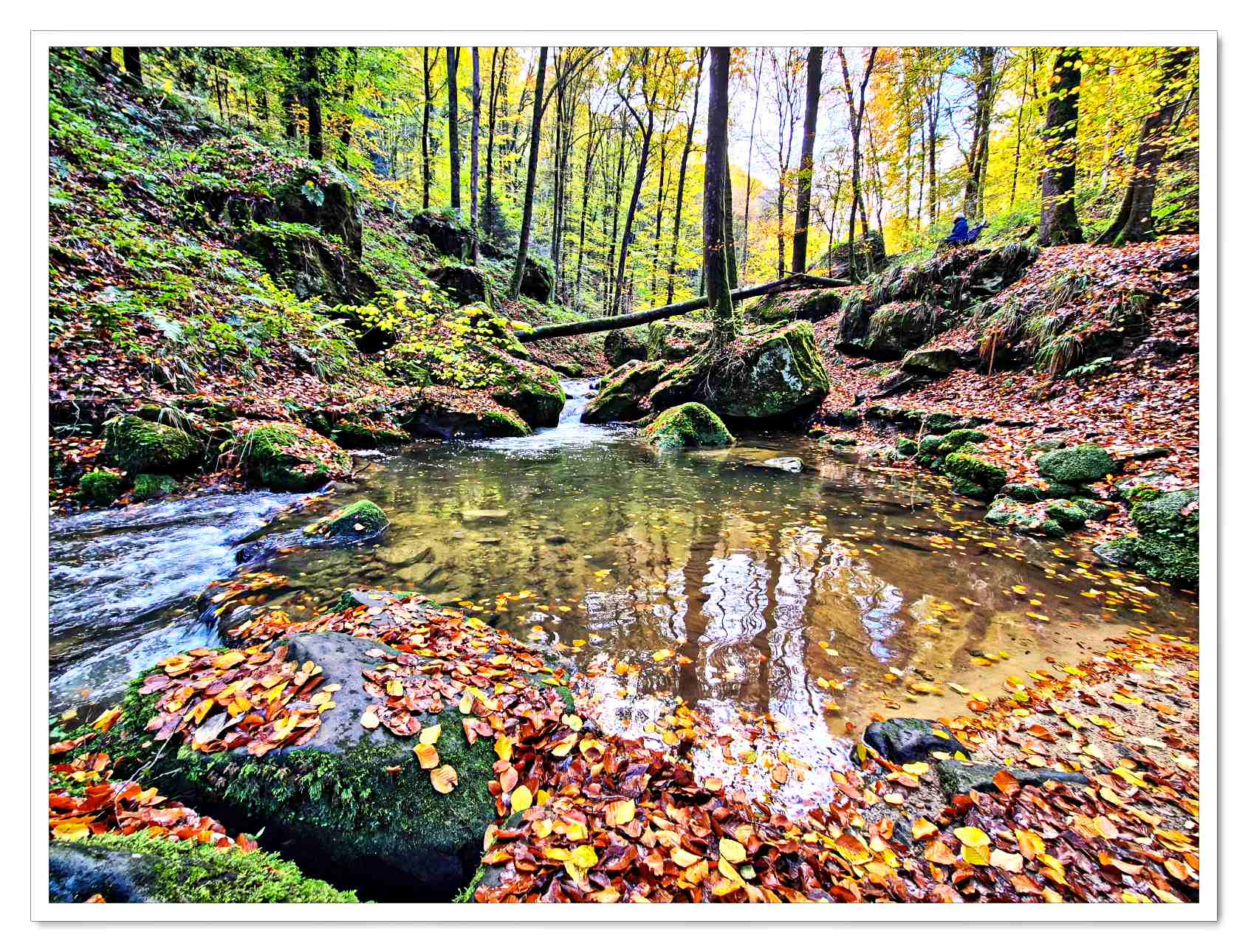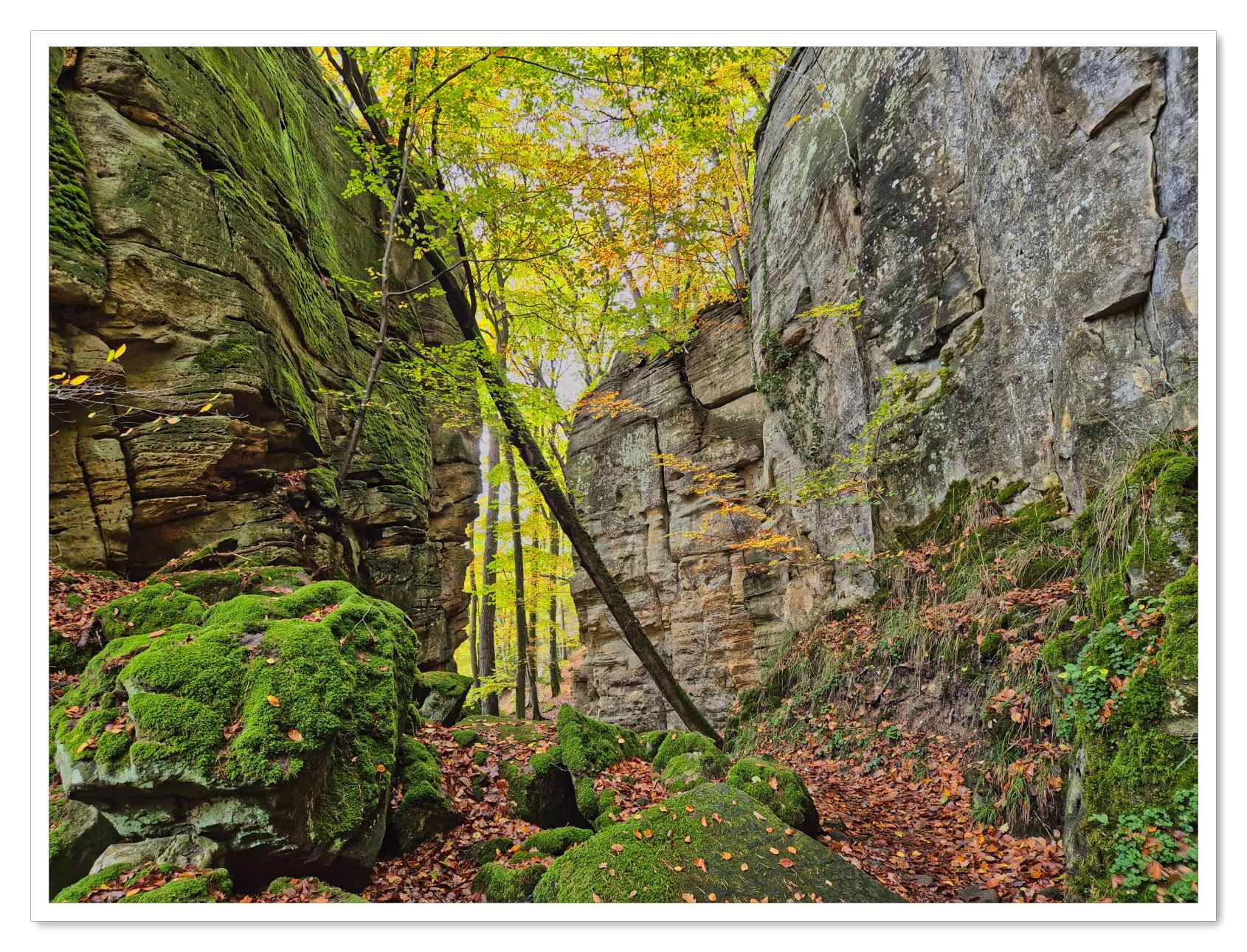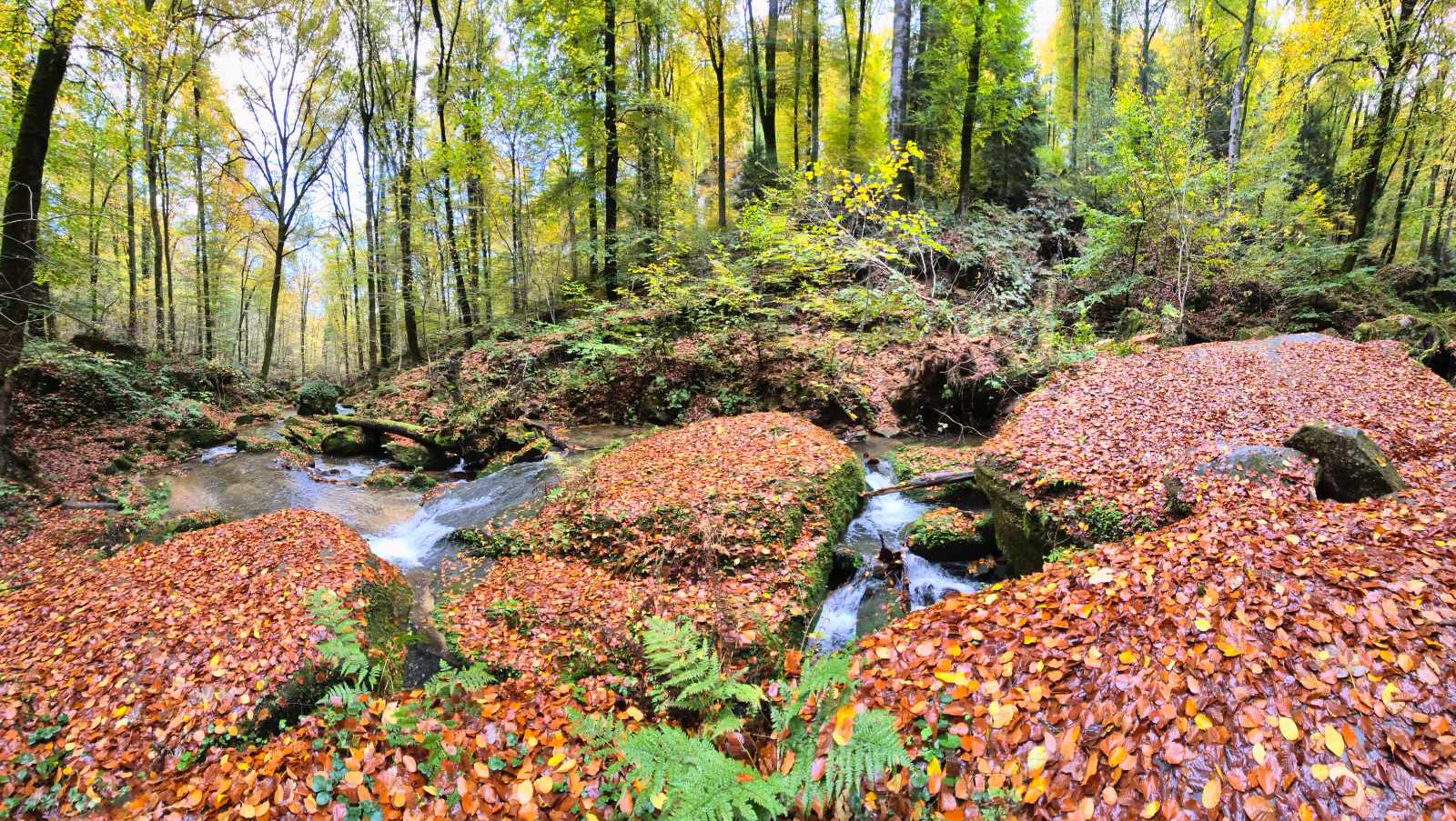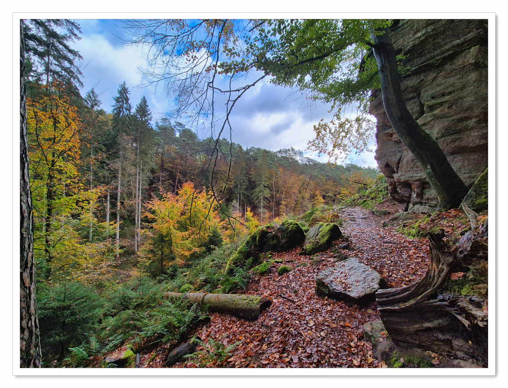 Evenals voorgaande twee jaren verbleven wij, nu voor de vierde maal alweer, in Auberge Rustique in de plaats Beaufort in Luxemburg. Opnieuw hadden wij voor de herfst gekozen om 5 dagen door het Mullerthal te wandelen. Ook ditmaal hebben wij daar geen minuut spijt van gehad. De goudgele herfstkleuren waren oogverblindend. Zelfs op de laatste dag, de dag waarop het regende waren de kleuren magisch.