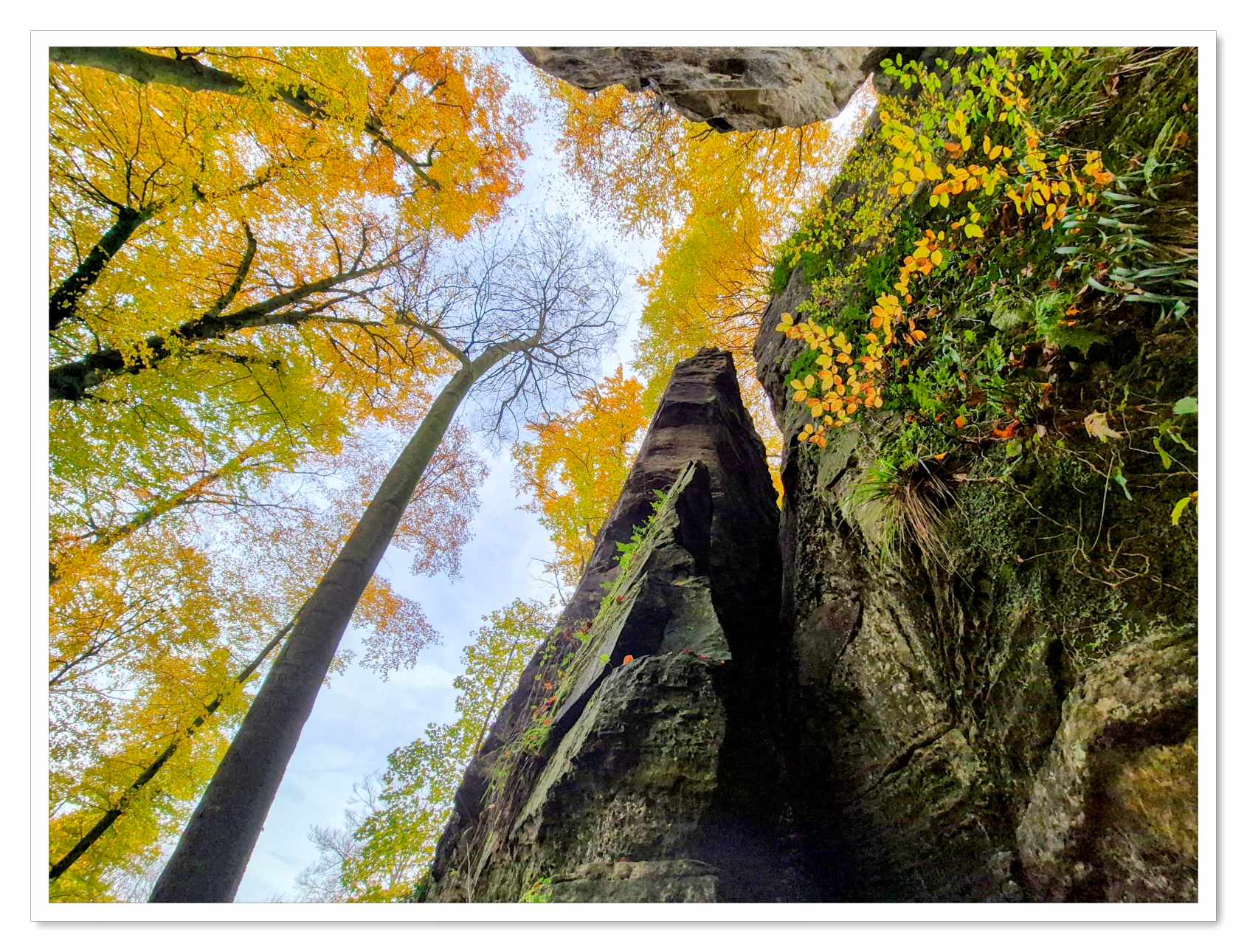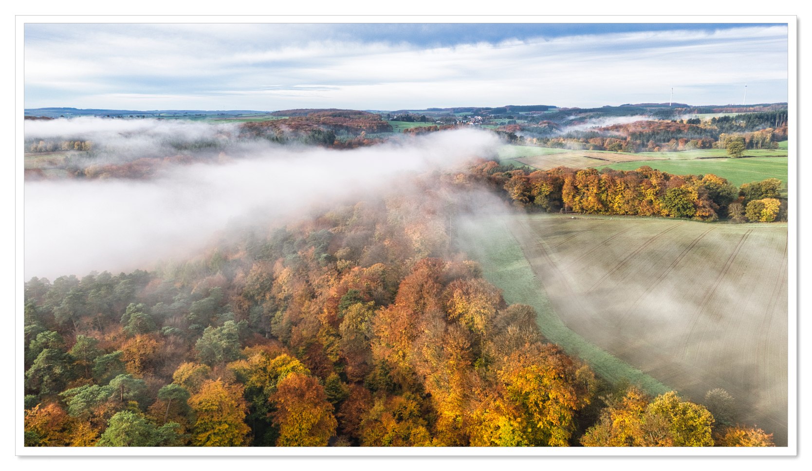 De vierde dag begint goed. Er hangt een mooie neveldeken in het dal en gelukkig heb ik de drone mee. De route die wij op deze dag wandelen start bij de Consdorfer Molen of in het Luxemburgs Konsdreffer-Millen. Een mooie en afwisselende route die ook langs, voor ons bekende plekjes, komt zoals de Schiessentúmpel waterval.