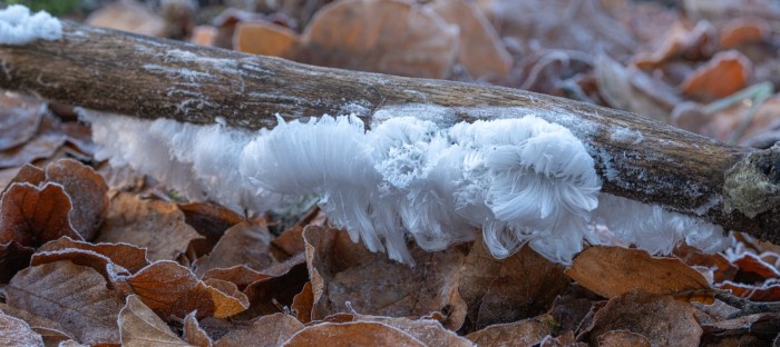 Geplaatst op 14 januari '25 De afgelopen paar dagen waren de omstandigheden 's morgens ideaal om ijshaar, ook wel de Baard van Koning Winter, te vinden. Lichte vorst en een vrij hoge luchtvochtigheid. IJshaar is in feite het vocht dat bacteriën in dood hout afscheid. Dit vocht komt via haar dunne gaatjes in het hout … Ideale omstandigheden – IJshaar verder lezen